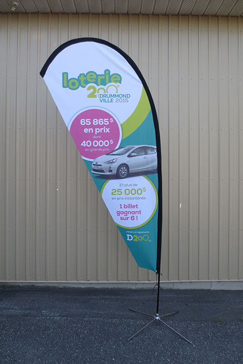 DRAPEAUX PROMOTIONNELS (BEACH FLAG) : Ce nouveau produit est un excellent moyen d’attirer les regards autant sur la rue que lors de vos salons, foires, et évènements intérieurs.
