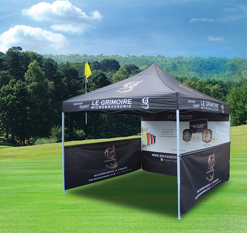TENTE PROMOTIONNELLE (10’ X 10’) : Nos tentes sont composées d’une structure en acier peint juste assez mince pour être légères, mais juste assez épais pour les rendre compactes et
